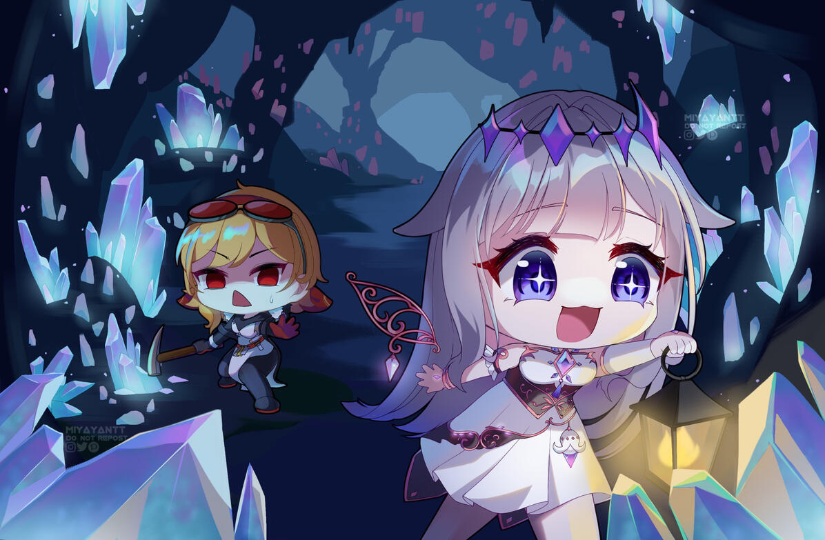 The story behind illustration i drew for them is about two people mining and finding a cave with beautiful crystals inside.